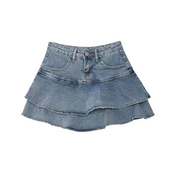 女性用ハイウエストAラインハーフスカートホットガールスタイルフィッシュテールプリーツデニム夏ヴィンテージカジュアルデザインスリムヒップ秋用